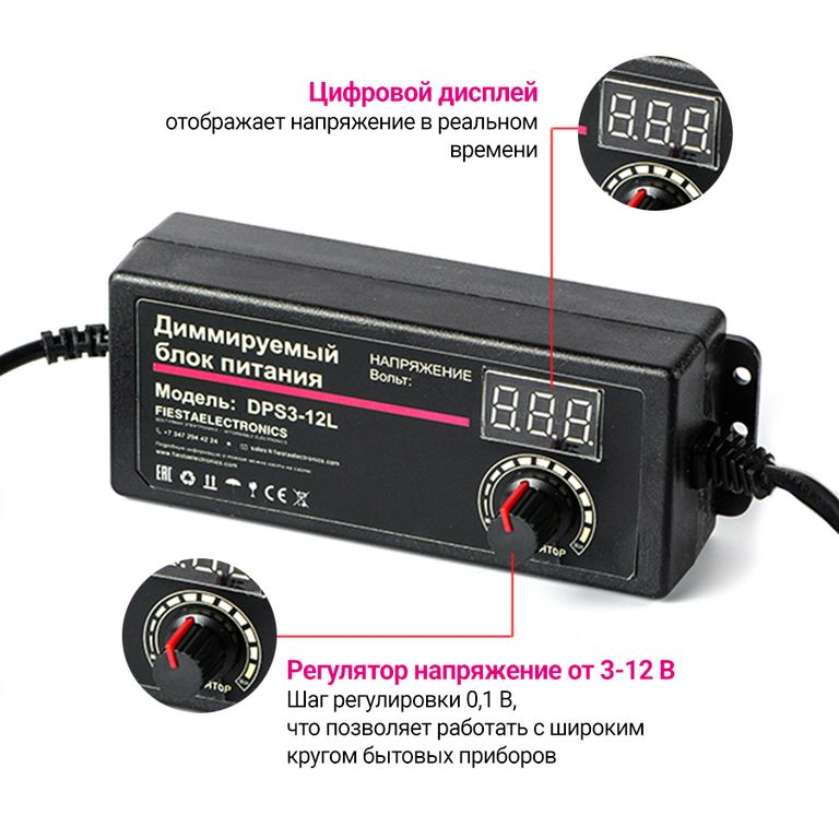 Независимо от того, используете ли вы его для питания светодиодных лент, систем видеонаблюдения, аудио- или видеоустройств, блока питания 3-12В 3А с LCD дисплеем и регулировкой напряжения от Fiestaelectronics станет вашим надежным помощником.