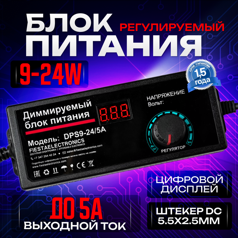 Диммируемый блок питания Sila DPS9-24 (5 А с вольтметром) - 1 шт.